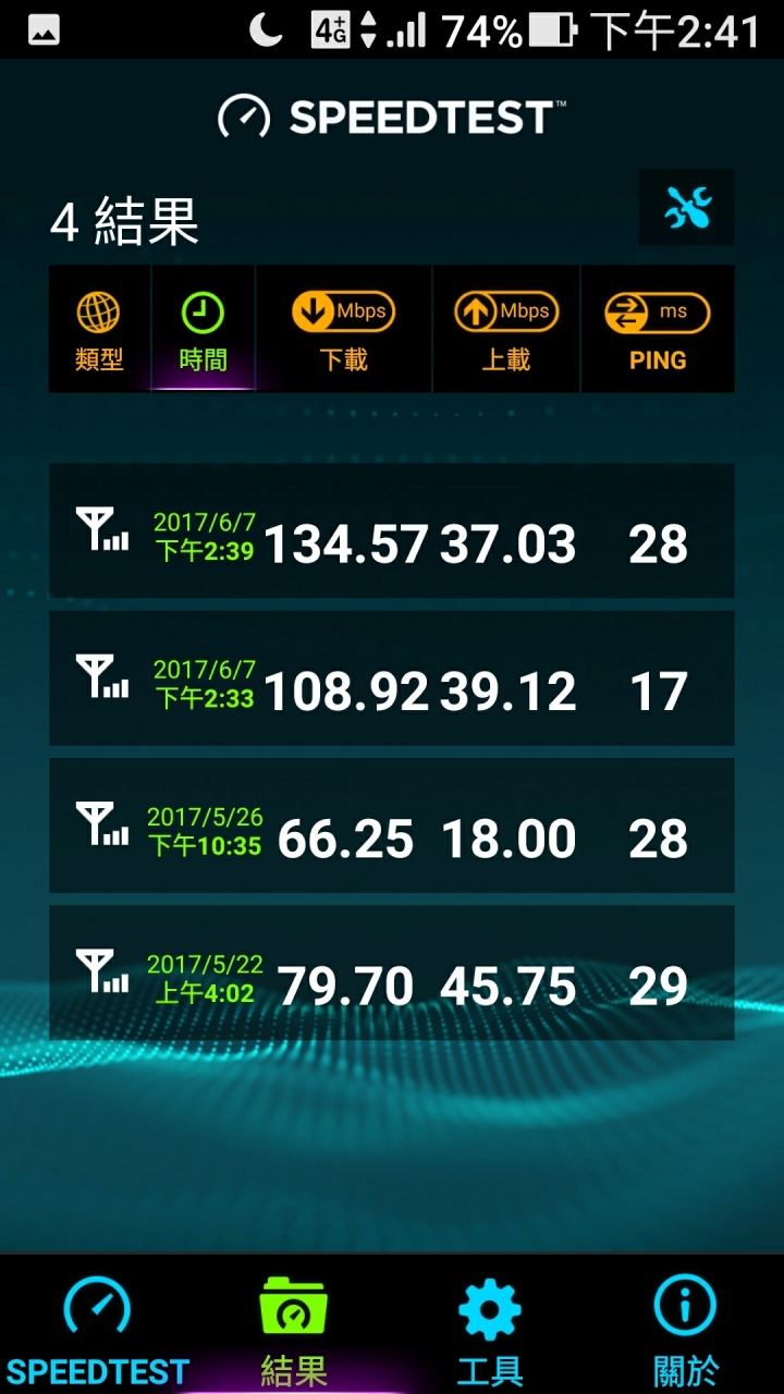 如果速度夠快,單頻就能夠突破百了,前幾天在台哥大借到的備用機是三星 J7 第一版而已,只有支援單頻,系統 5.1,在辦公室凌晨 4點~5點半測試,台哥大 130~140,遠傳 95~108,中華 70~85,台星 60~70 Mbps。單頻會有那種速度我也很意外,撥號輸入 *#0011#,發現台哥大抓到的是 700 頻率的 B28 頻段。