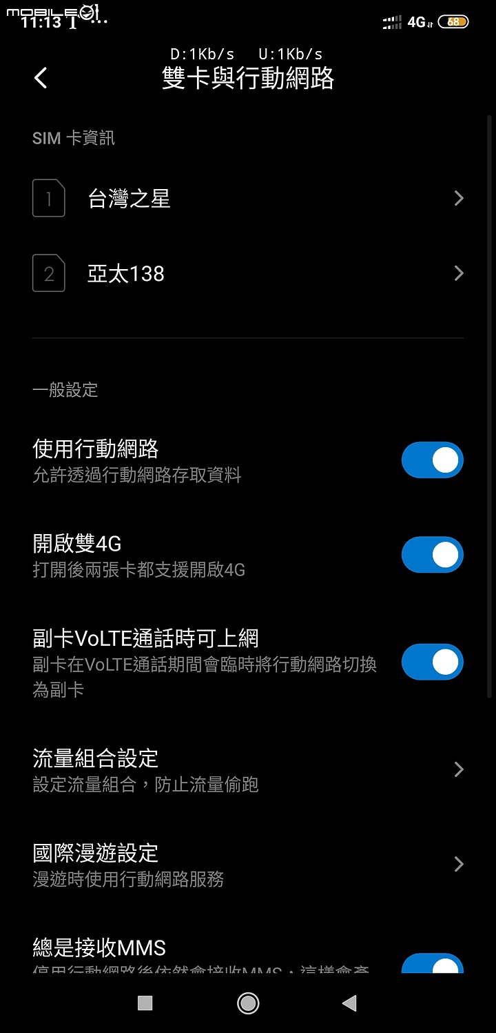 我的手機是ASUS max pro m2 目前2卡都是台星,沒有申請VoLTE 卡1是通話用 卡2是上網用 現在有個問題是 當使用卡1通話時 同時要上網,似乎就卡住了 這是設定的問題還是本來就會這樣? 這是平常時的畫面 這是通話時的畫面