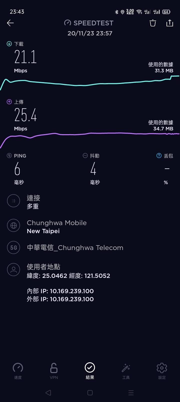 目前在北市用起來其實普遍都收得到訊號 用起來也順順的平常就沒特別去測速