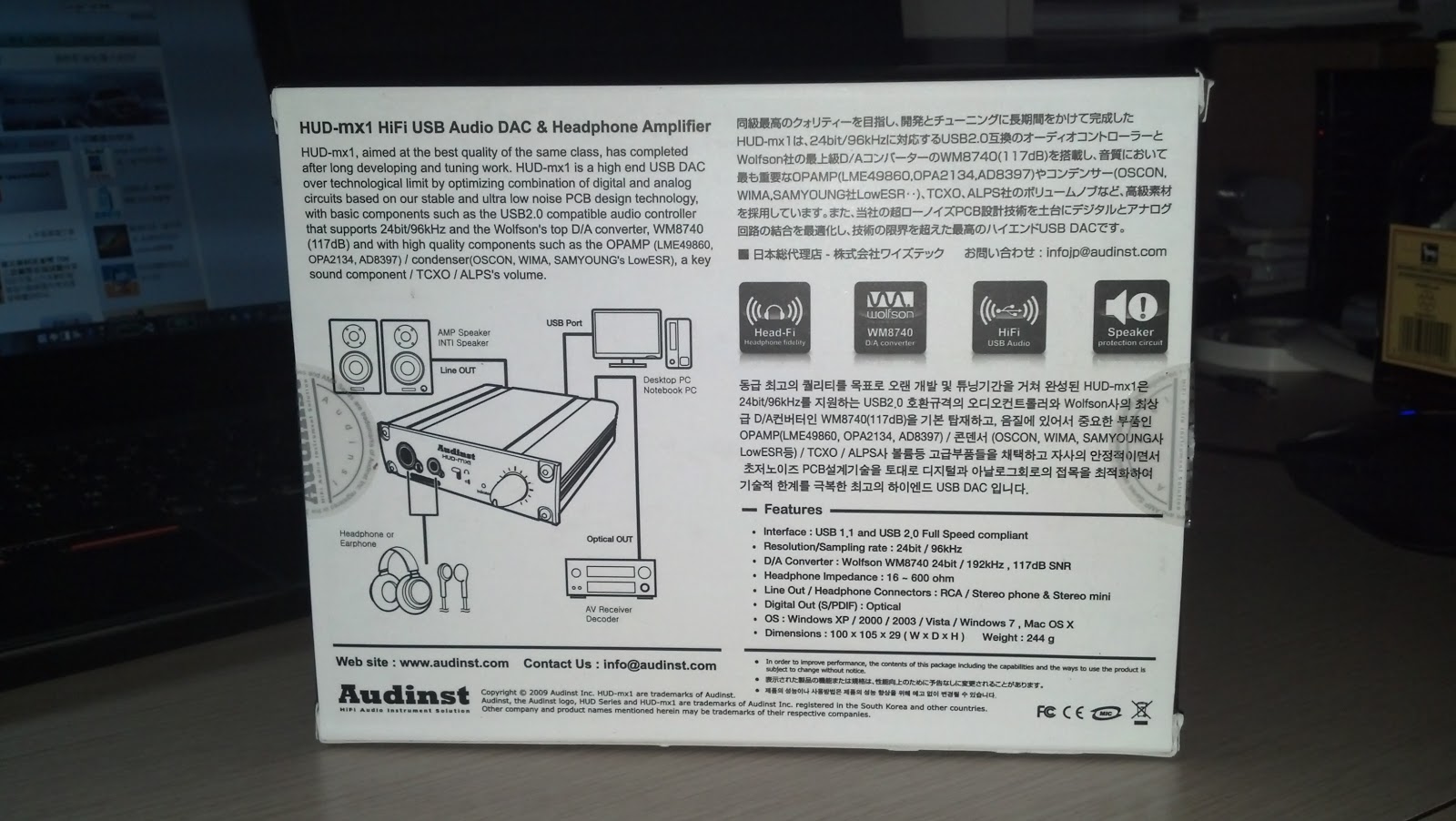 盒子正面 - 本來是挺簡潔的, 不過左下方就貼了張貼紙告訴大家這件產品在2010, 2011和2012年都拿到了日本那個VGP什麼什麼金獎, 反正都是Audinst拿來炫耀用的, 它拿不拿獎對它的聲音沒影響 (事實上我也不了解那個是什麼獎)。