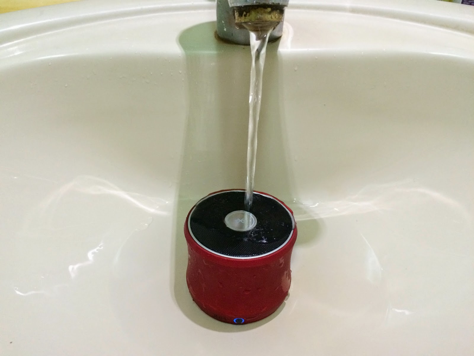 具備IPX6認證的防水等級的J2藍芽喇叭,當然要直接來測試防水效果。最近一直沒機會去烏來瀑布,只好用家裡的水龍頭來模擬瀑布沖頂的感覺。