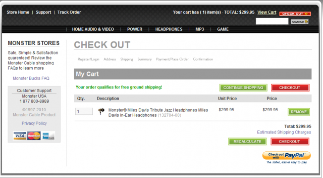 blove1314520 wrote:我說的是特賣網頁的那...(恕刪) 不用懷疑了本來STUDIO只要99美金現在已經漲價了www.monstercable.com這才是MONSTER的官方網站...BEATS系列網站只是分站...這特價已經持續幾星期了你看他賣的東西不全不是耳機光第一個喇叭盜版根本不可能會做如果真的不信把物品加入購物車回到http://www.monstercable.com隨便亂逛再點購物車 東西一樣在這表示兩個網頁是有關連性的$59的是全新的TURBINE$39的是整新品價格低是有道理的而且...連結不就在官網左下角嗎...按按看就知道了