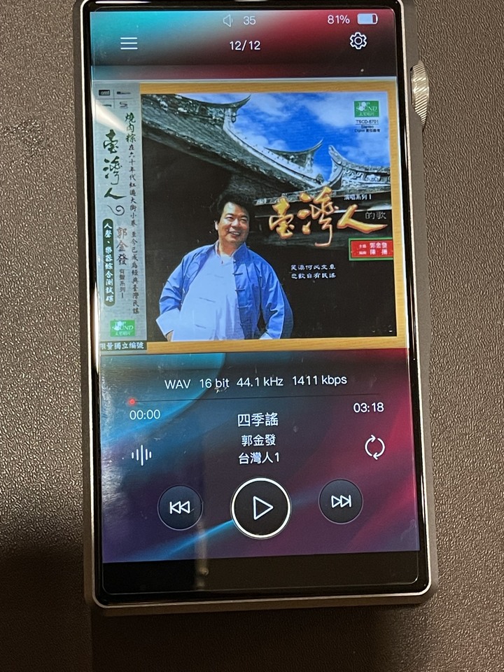 lanthan wrote:喚醒螢幕遲緩的問題,等SONY軟體更新,看能不能改善 在別的社團看到有人說, sony預計10月會出新韌體改善.目前喚醒問題對我並不造成困擾, 因為久久才一次, 知道有這問題就不會驚慌, 等個幾秒後螢幕就出現. 我比較在意的是我有的中文曲子, 資訊都是????? 無法顯示, 有的曲子又可以正常顯示中文, 甚至簡體字也可以出現.下面舉例這幾張專輯都是我自己rip的,有空再研究看看是差在哪裡,可能是wav格式的讀不到資訊。檔案目錄可以看到中文曲名播放畫面抓不到資訊,顯示????這個就很正常,封面及曲目資訊都有同樣的專輯,在金磚2無法正常顯示,在iBasso DX220就沒問題。