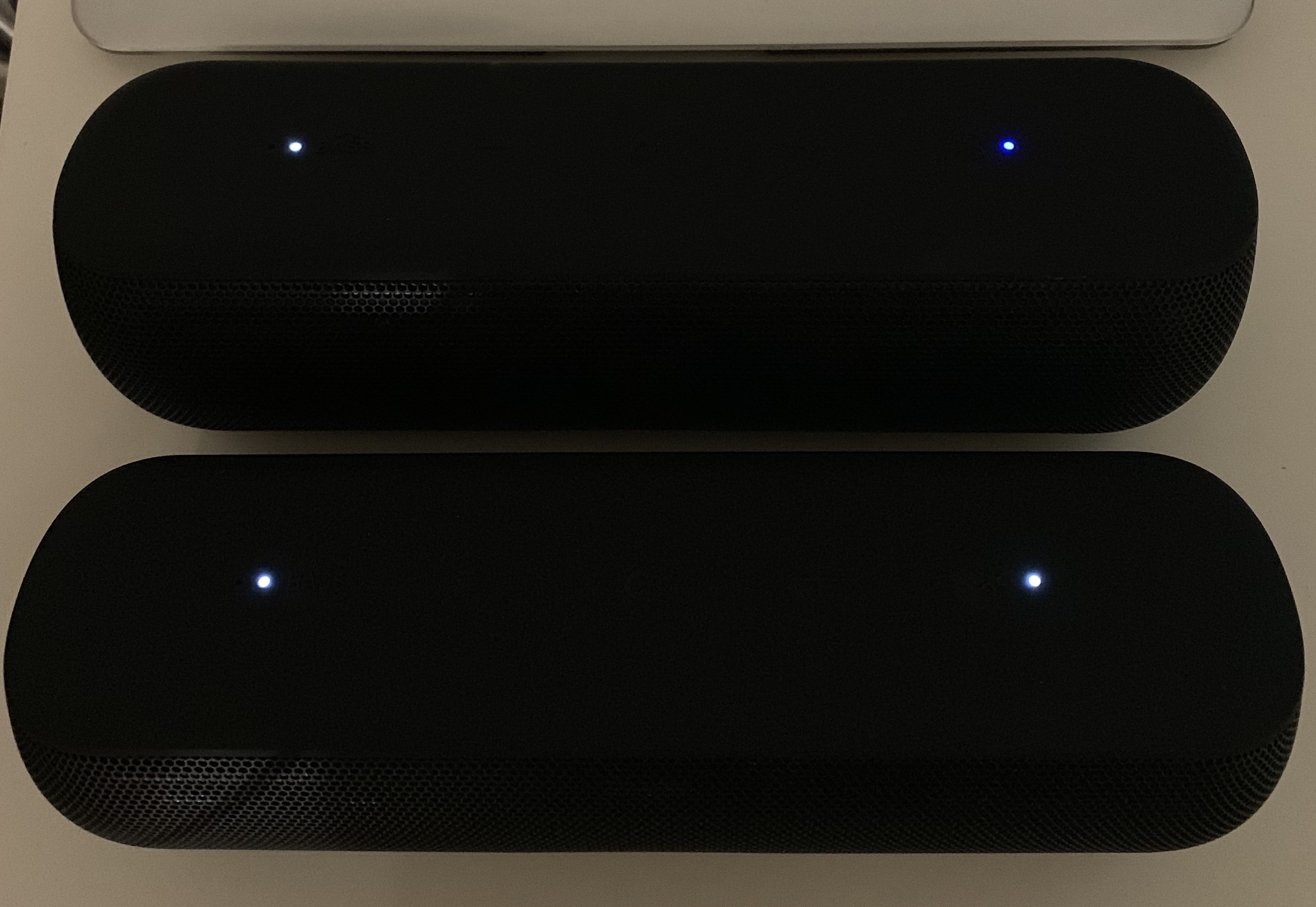 [雙機stereo配對] 約台灣中型房間, 喇叭彼此間距約1.5公尺, 音場與分離度大幅擴增, 讚! 但是... 定位結像比較不穩定, 聲音也略偏瘦, 音質起了維妙變化: 高頻變得過多一點點, 更偏亮帶來人聲毛邊, 不過於顯著但存在, 導致整體音質略輸單機, 右機偶發短暫斷訊後再連上, 但還是偏好雙機stereo配對聽, 因為大幅擴增的音場與分離度, 以及更大的音量上限.