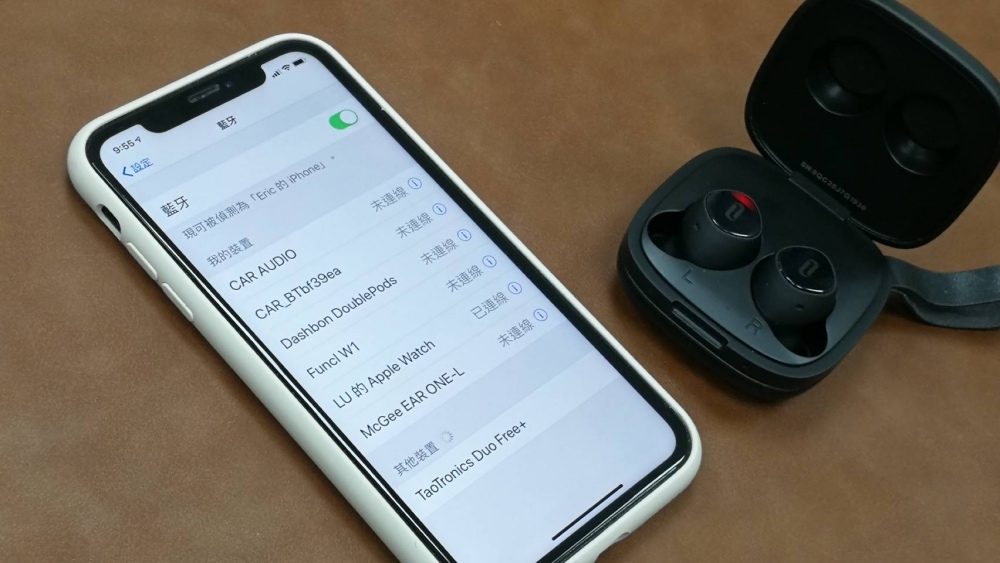 第一次使用,打開充電盒上蓋,開機完成後,會等待配對。開啟手機藍牙,搜尋到TaoTronics Duo Free+,點選後就會完成配對。