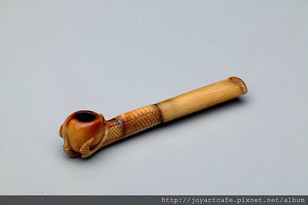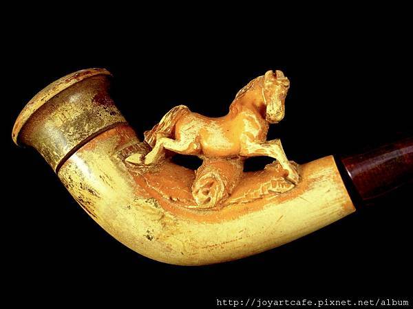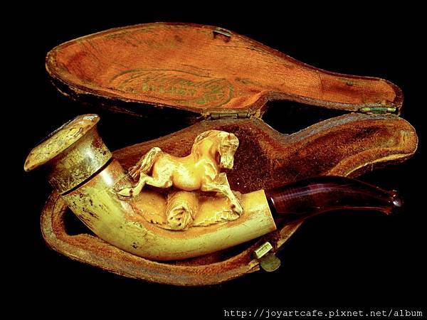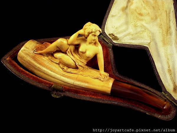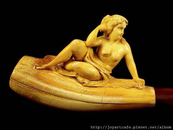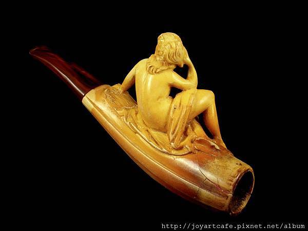 然而,為什麼我會收集煙斗呢?最主要是煙斗造型多,材質也多,而且不論東方或西方,煙斗上的裝飾也是集合許多工藝家藝術傑作。記得十多年前,我和內人參加美國「愛之船」的旅遊活動,活動的起點是在佛羅里達州,之後開往中美洲巡遊,每到一個港口,大船停在外海後便會有小船前來接駁,於是陸陸續續參觀不少的景點。在牙買加的一個港口,我們在一家古董店看見一件裸女煙斗,是用海泡石雕鑿的,美女線條十分漂亮,雖然標價三百多美元,還了價,打了九折,只因為喜歡,所以買了下來,而這也是我第一件煙斗收藏,製造年代大約是1900年。這件作品由於放在煙盒中,所以保存狀況良好。