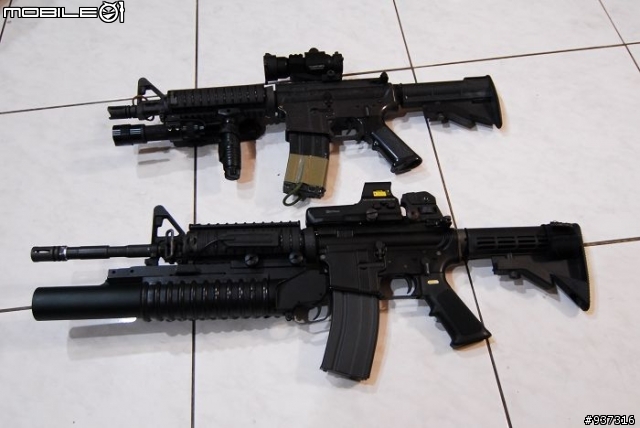 跟我征戰多年的Marui M4,一路由Marui M177升級而來我的新歡WE的M4第一次碰到就愛不釋手,有類真槍冷冽的外在與像真的操作方式當彈藥耗盡時槍機會固定在後中空的握把,這是電槍所沒有的(左Marui M4 右WE M4)新歡與舊愛這是多年累積下的成果,但還是覺得氣槍比電槍好玩~