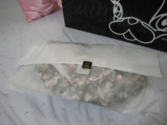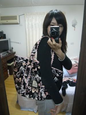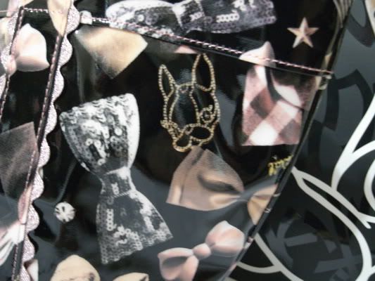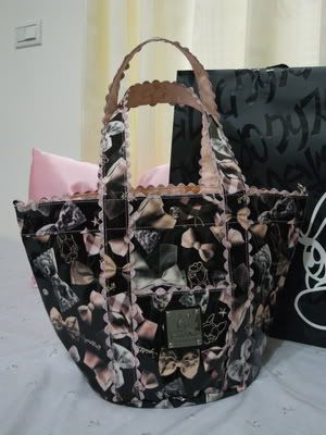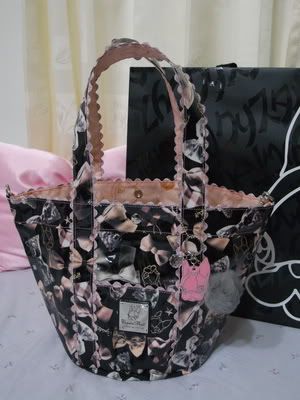 黑底透粉的整體花色+提把粉色金蔥蕾絲邊