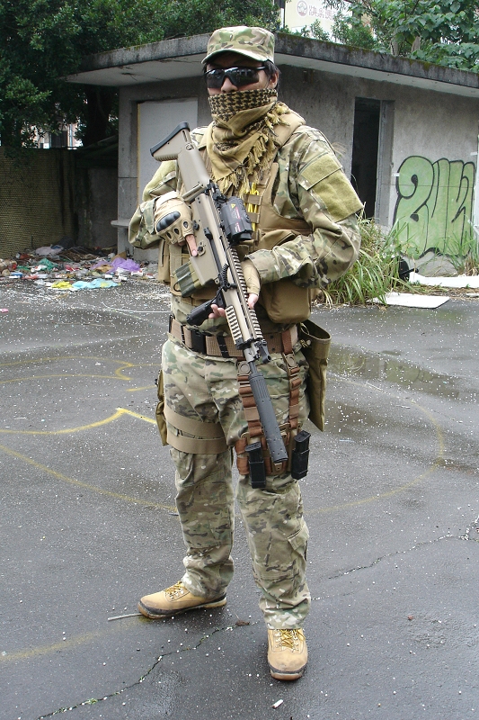 在這初次上市的版本, 為固定槍托的卡賓槍, 推出黑色, 棕色與葉綠色。我目前以Multicam為主要裝備, 故購入了棕色槍身的ACR。