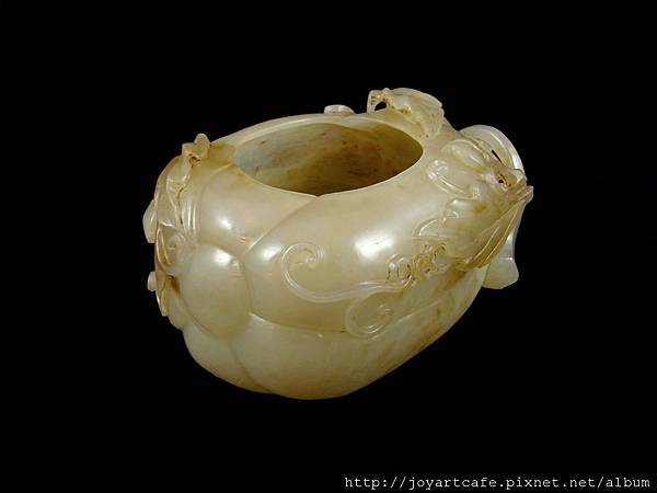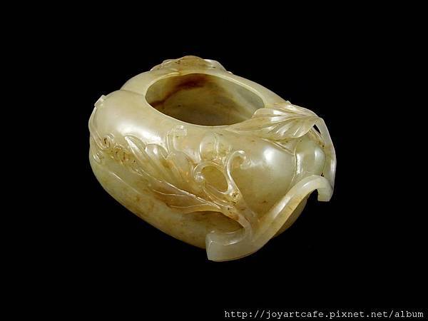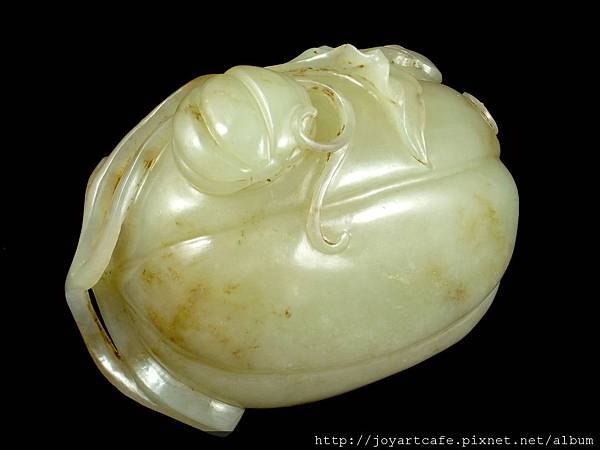 清代白玉瓜形筆洗,長:178mm,寬:162mm,厚度:47mm,重量:126g。