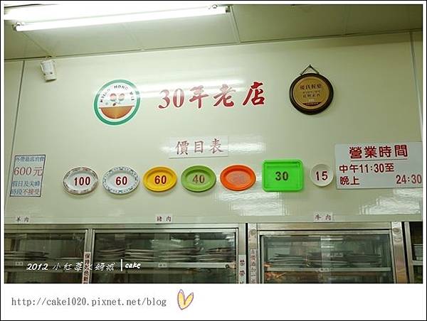 各色的盤子價格都貼在牆上了。