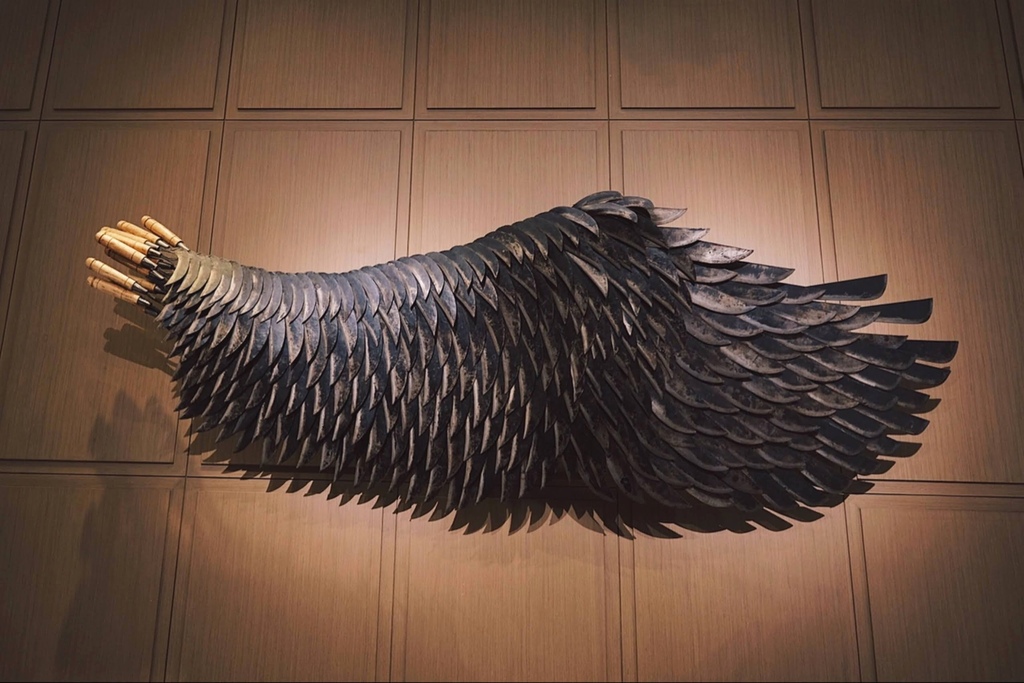 萬花廊對面還有一個超特別的裝置藝術,是一片用刀具拼湊而成的黑色翅膀,讓人不禁想起英姿煥發的老鷹形象,實在太帥了!!