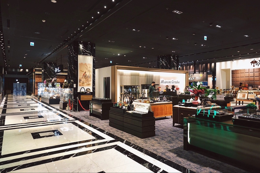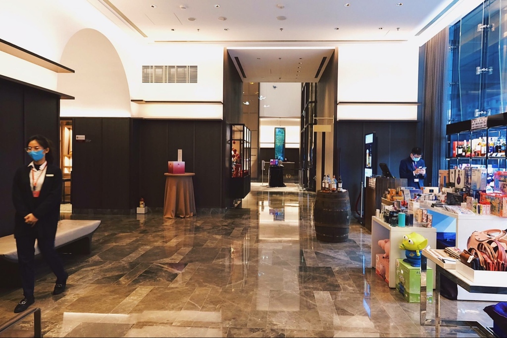 回到剛剛的蝴蝶拱門往右手邊走,首先會看到昇恆昌的小型免稅商店,往前的電梯是通往一般樓層的客房。