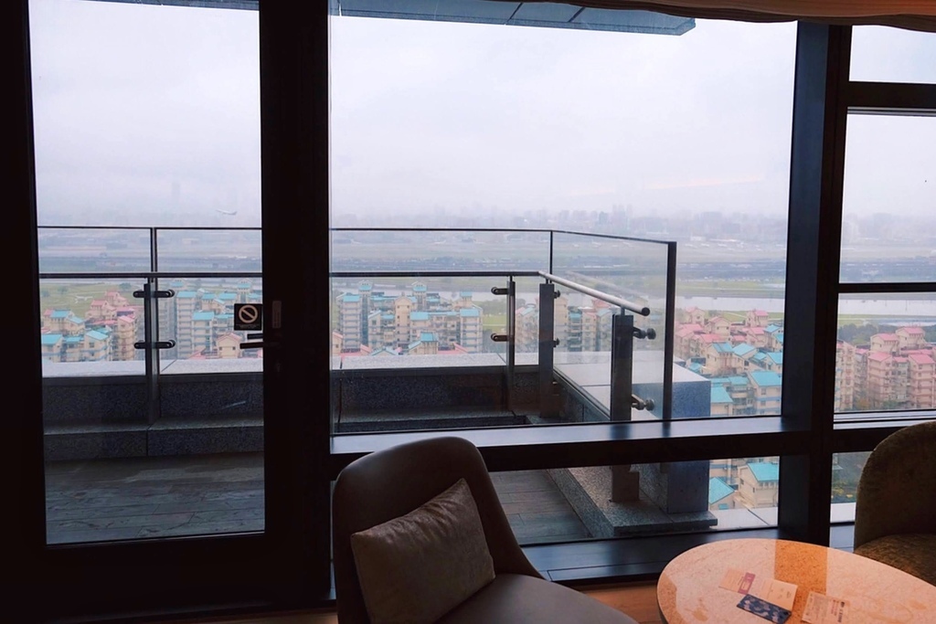 我們這次是住到市景的房間,從22樓居高臨下整片松山機場都能盡收眼底,窗外還有個小陽台,但被鎖住了不能出去,
