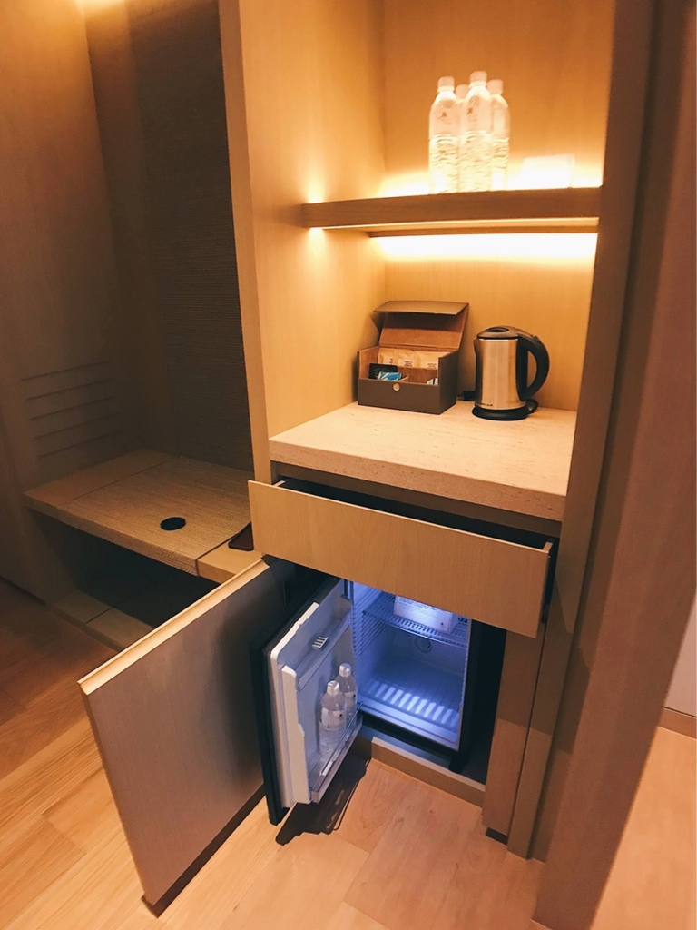 回到房門口的長廊,這裡設置了mini bar、冰箱還有後方的衣櫃區。