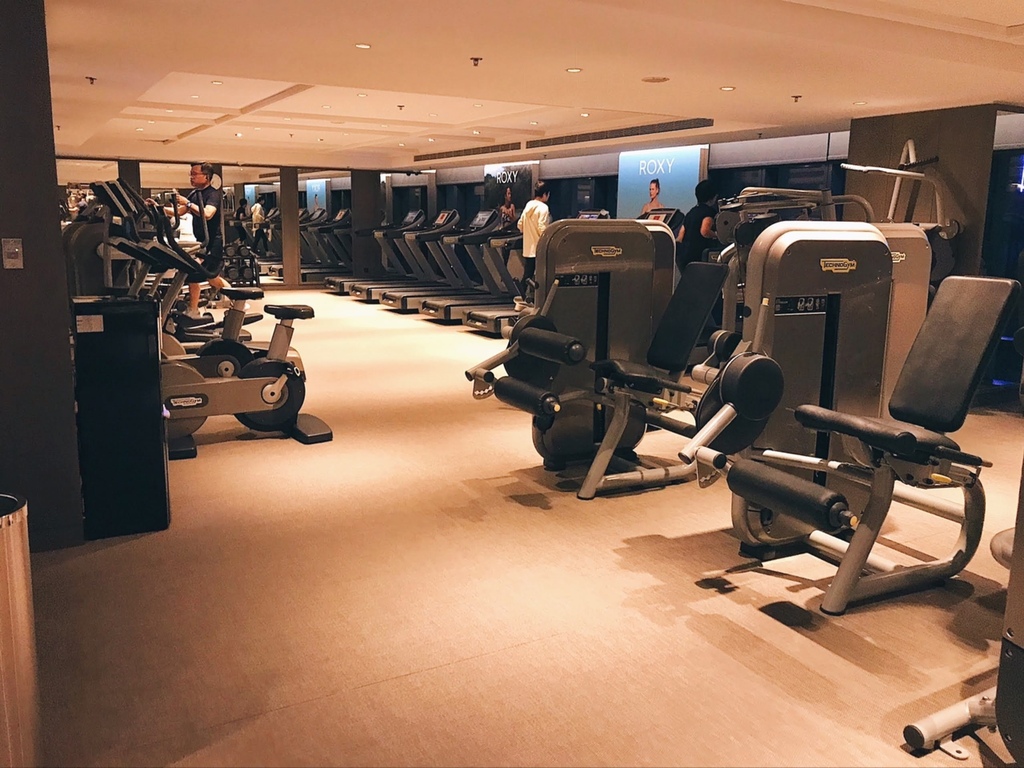 健身房裡頭大致分為兩個區域,靠近入口處的是重訓器材,往裡面是心肺有氧器材,