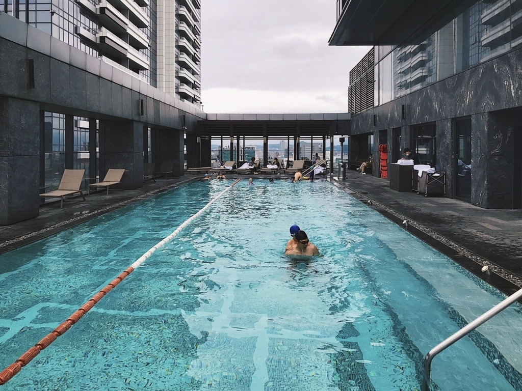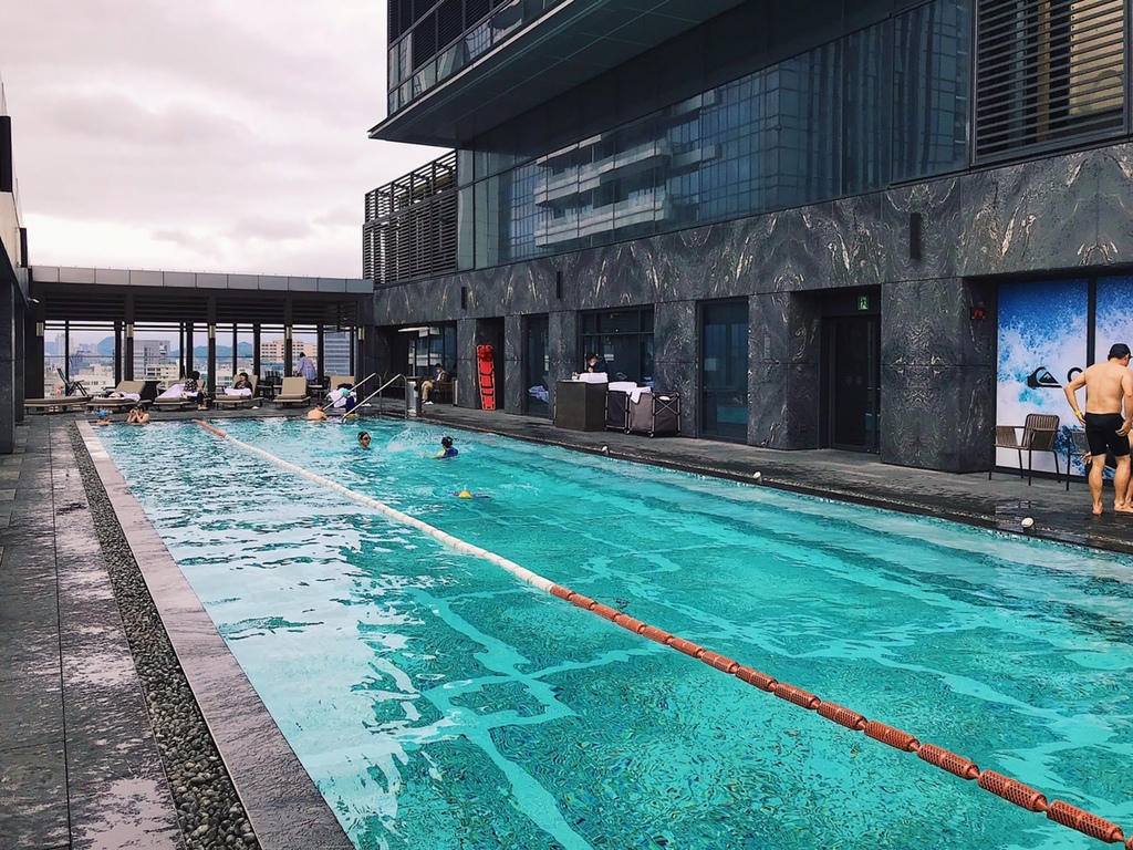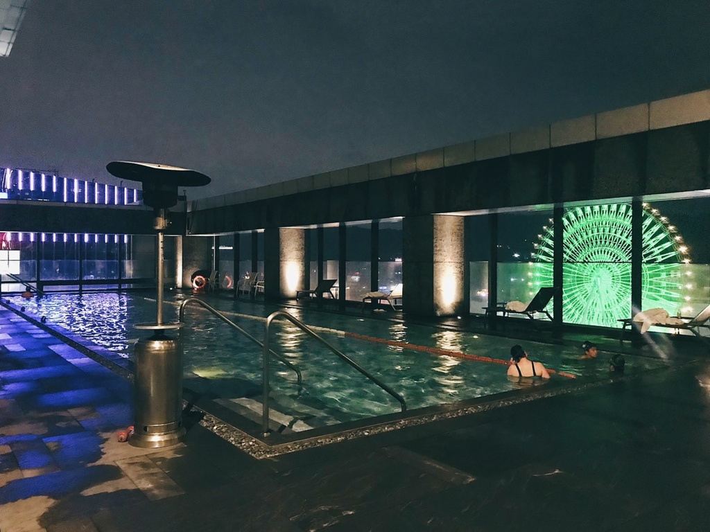 戶外游泳池的部分開放時間也是06:00-22:00,還是溫水的就算冬天也可以游,到了夜晚還有閃閃發亮的美麗華摩天輪陪伴。