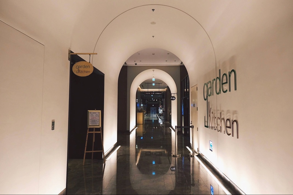拱門裡頭右手邊就是吃早餐的地點Garden Kitchen,前面右手邊有個美麗的萬花廊,提供各種貴賓的花藝需求,