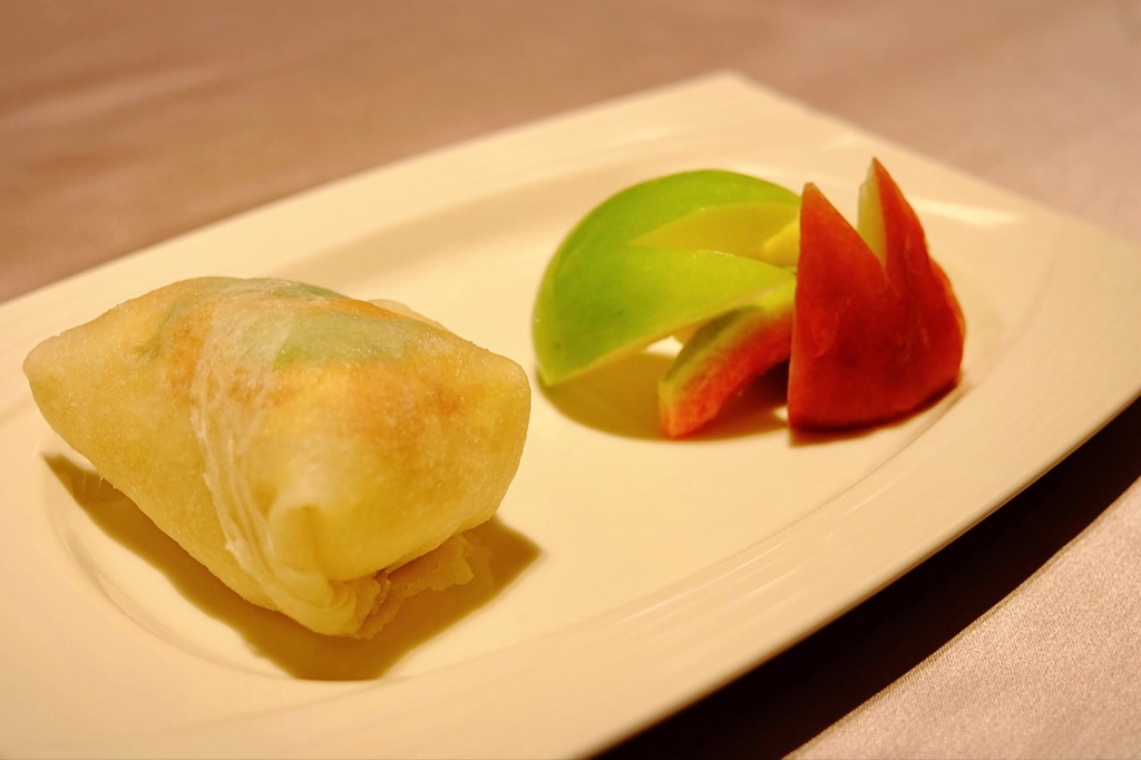 最後一道是「寶島鮮果盤」與「芒果冰淇淋花生捲」,以鮮甜的台灣水果和古早味花生捲冰淇淋和芒果冰淇淋結合,迸出有趣新滋味做結尾。