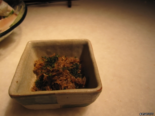 看起來有點像漢堡肉,服務生說是安康魚肝,不過我第一次看到這麼大塊的魚肝,應該有加細绞肉之類的吧~不錯吃,不過我個人喜歡吃小小塊配點酸酸的醋!!太多會有點膩~