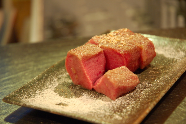 鹽蔥頂級冷藏菲力$240, 本來以為菲力應該是牛排形狀的,沒想到是切成小塊狀,這菲力的油脂相當豐富,所以口感也相當軟嫩,入口幾乎沒咬幾下就化掉了,還不錯吃,就是有點少。