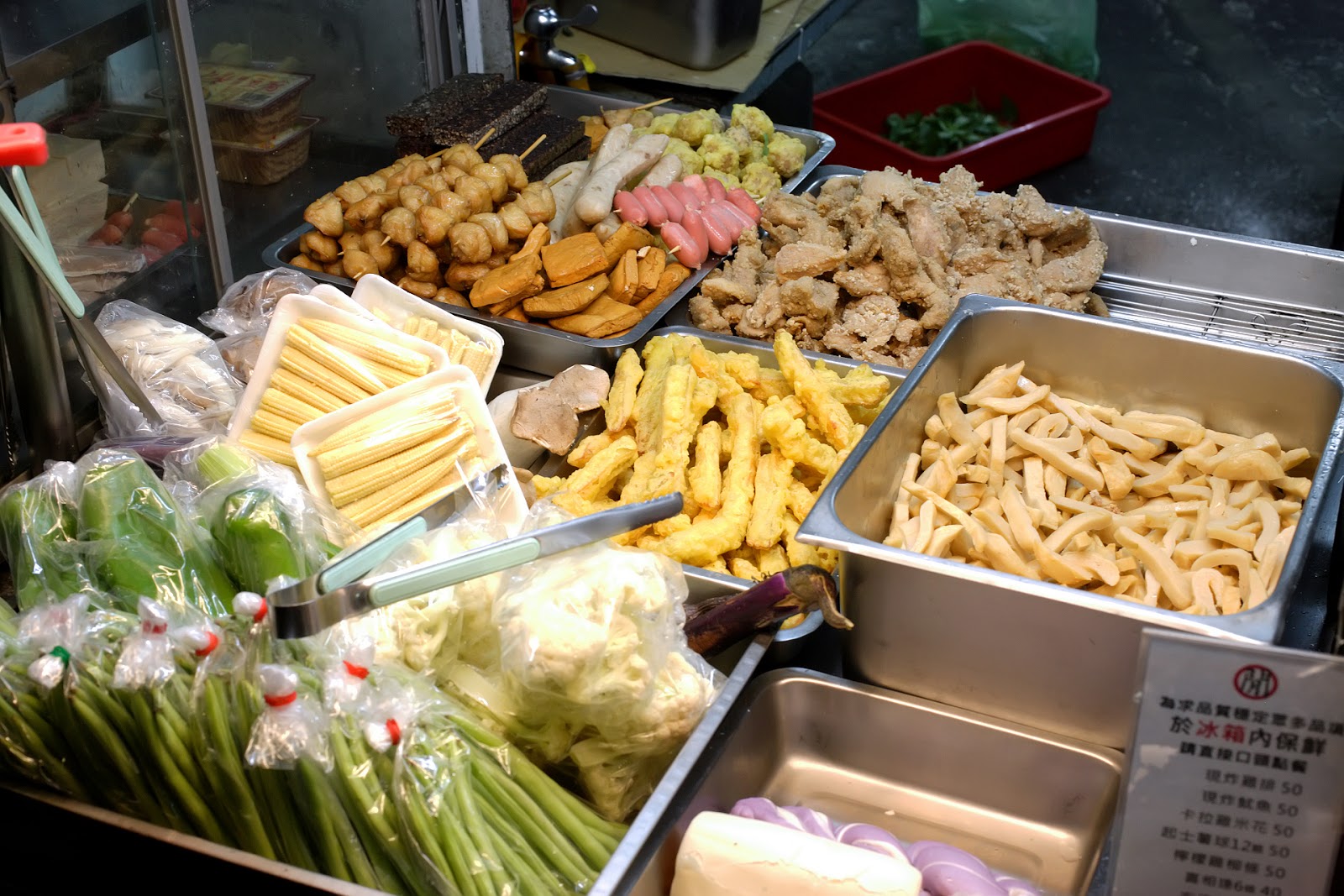 擺滿滿新鮮的食材, 不管哪樣份量都不少, 可能也是他們當晚剛開, 所以還能有很多選擇. 不過我們坐在旁邊吃的那段時間就看著客人陸續的來買鹹酥雞, 應該沒多久就通通賣光光了吧.