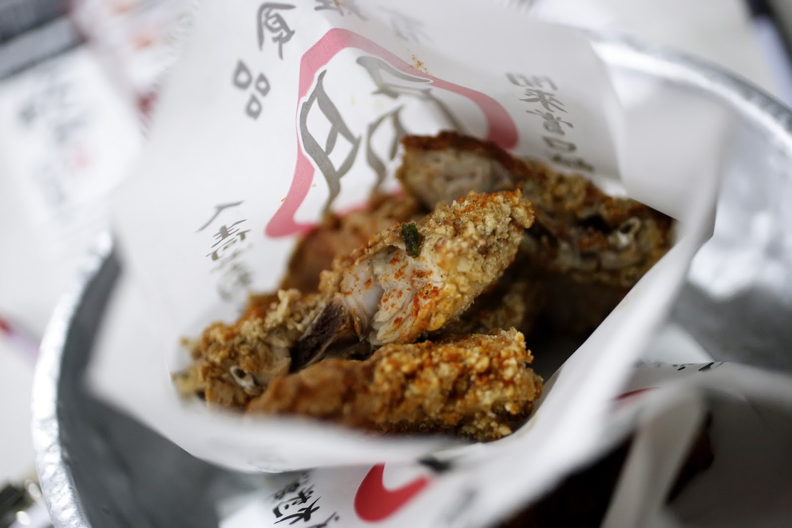 雖然沒有仔細去拍油的照片, 但是從這角度可以看出來蠻乾淨的. 到外縣市就很多小攤販可以看炸的鹹酥雞油沒有在換, 就是深咖啡色了. 老闆自己也很愛吃鹹酥雞, 所以這樣講究當然是絕對的啦!