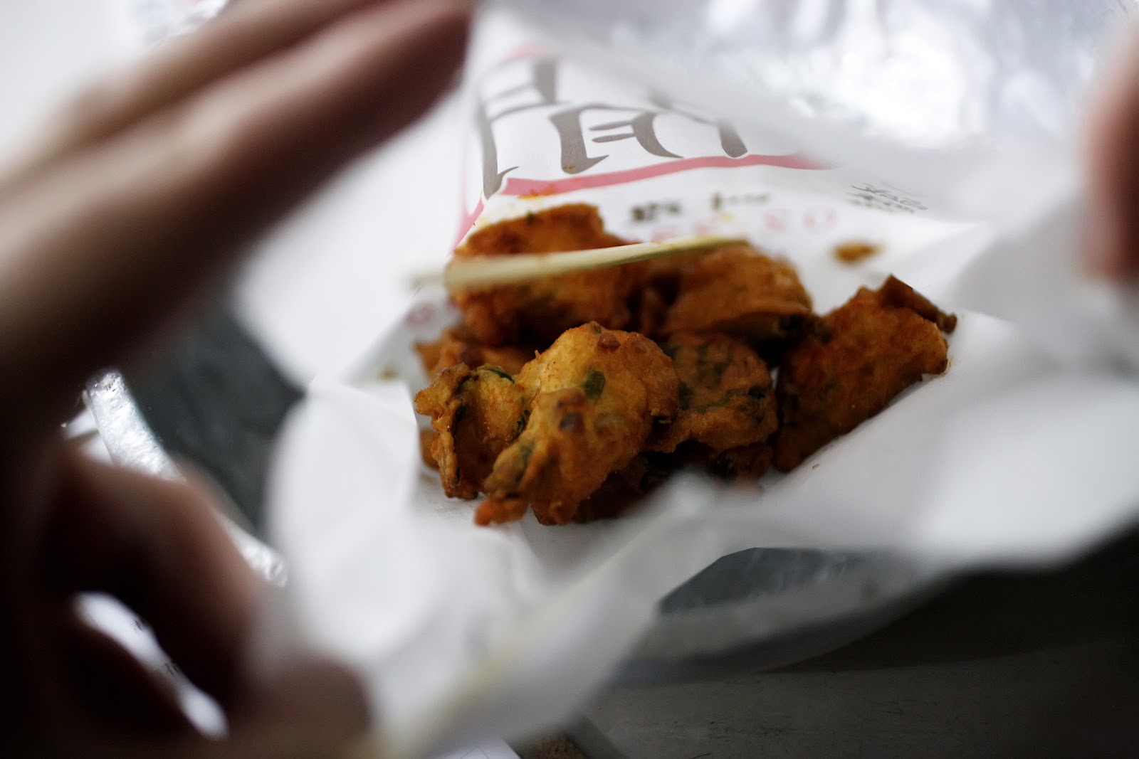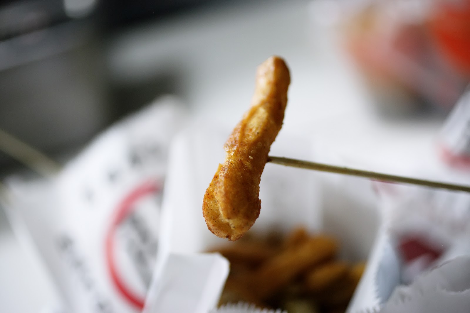 偷偷看一下雞排, 嗯, 份量蠻多的, 肉看起來也很大塊. 外皮雖然酥脆但是不會厚. 而內部的雞肉也是多汁而不會硬. 很久沒有吃到那麼好吃的鹹酥雞了. 這邊我只有加點辣, 不知道加蒜味的感覺怎樣? 下次回台灣再去試試!