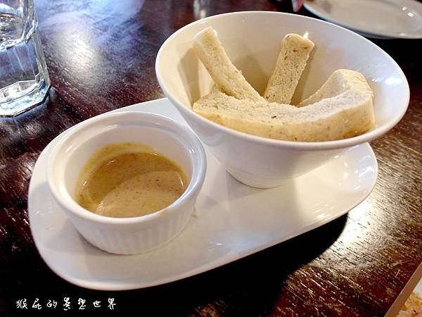 一進店內就會招手工待麵包佐泰式紅咖哩醬~泰式沾醬微辣搭配麵包很好吃