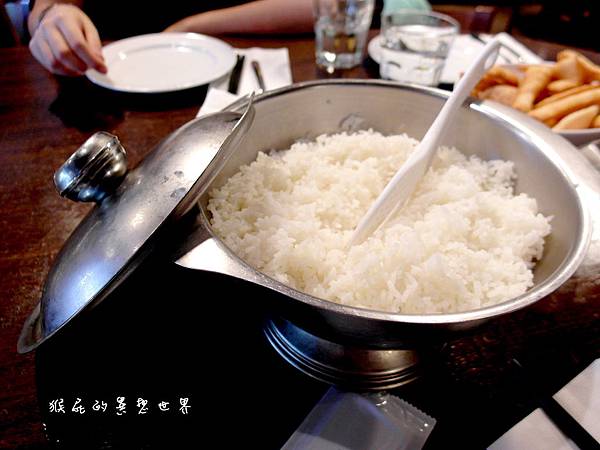 白飯是泰國米~無限量供應的吃到飽~會先來一大鍋~不夠再續