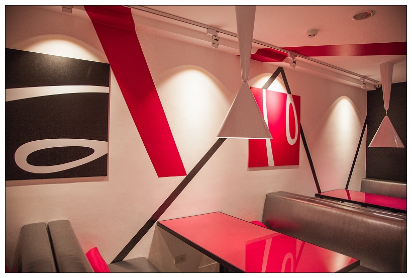二樓則是寬敞的桃紅色X黑色的用餐區