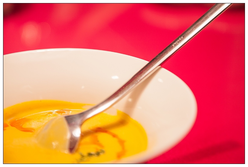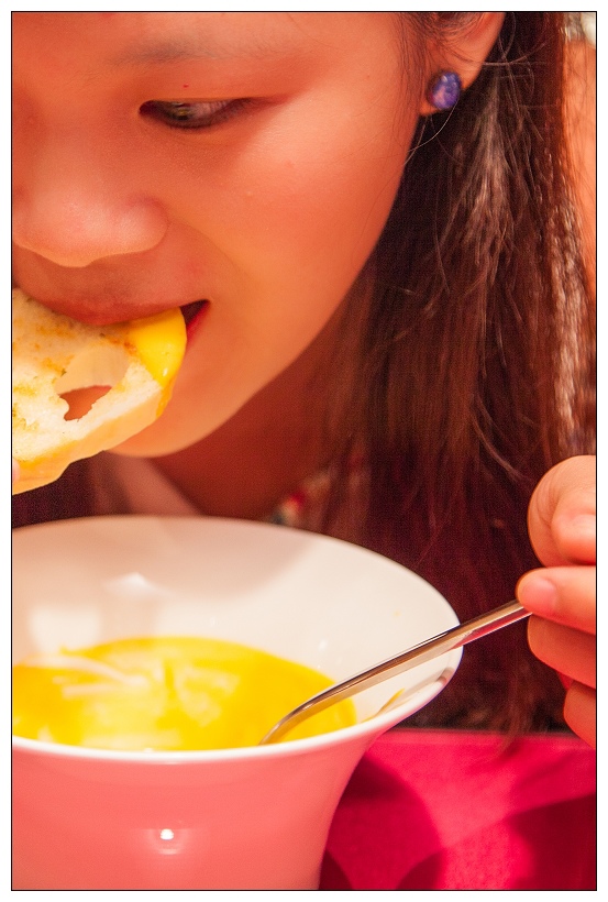 南瓜濃湯一般會在最後滴上鮮奶油增加香濃度