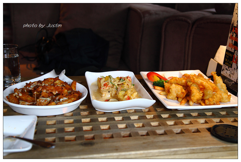 賈斯汀點了肉醬薯塊+酥炸魚片塔塔醬+金磚起司豆腐