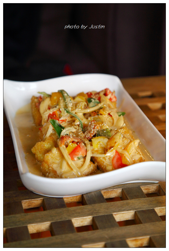 第二道菜是金磚起司豆腐