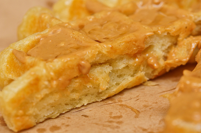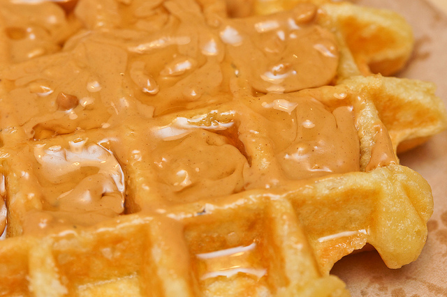 每個鬆餅方格子都塗滿了滿滿的SKIPPY花生醬!!!