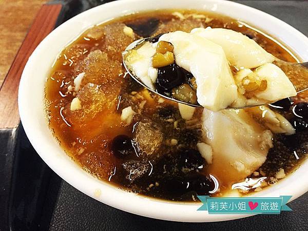 口感偏厚實的古早味豆花,吃起來咕溜咕溜的滑順口感,搭配粉圓與綠豆,更是軟Q,不會死甜的糖水混著小碎冰,夏天一定要吃這一味呀!