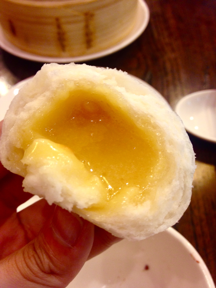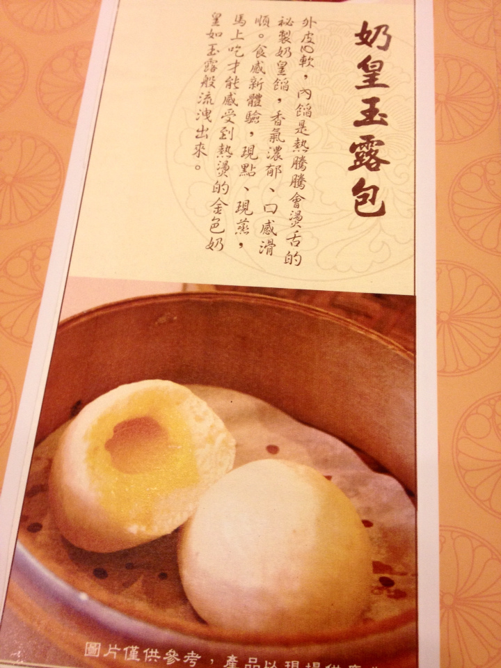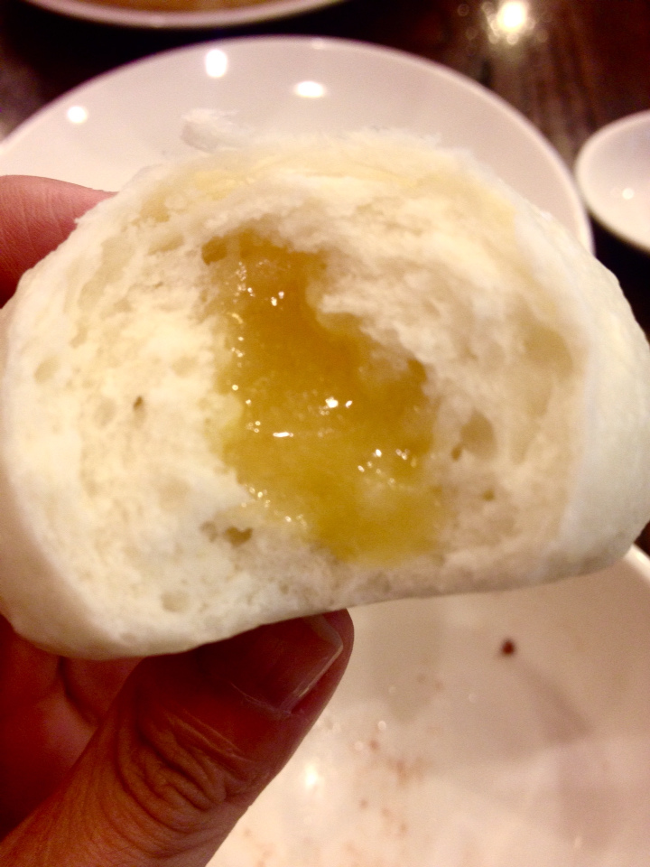 奶黃玉露包(NTD90)是我一看到就嚷嚷必點的,歷經無數次失敗,我真的真的很想在台灣找到"會流動"的奶皇包,而不是一坨乾乾豆沙餡的那種。今天我終於找到啦!!(灑花跳舞ing) 雖然一顆NTD45,但我太開心了,把它撕開後可以看到滿滿的奶皇,而且是有蛋黃香味的奶皇,每一口都幸福洋溢。 本來我男人不懂我尋找"會流動"奶皇包的偏執,吃一口之後他也懂了。