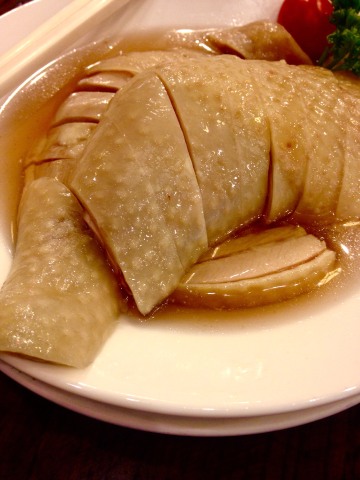 紹興醉雞(NTD460)有一整隻大雞腿(驚....好吧,其實也沒甚麼好驚的,畢竟都付了460XD 應該的應該的) 浸泡在滿滿的紹興酒裡面,沒錯,剛剛隔壁桌飄來的香味就是這個,我先把紹興酒乾了(誤)。 其實看到這份量我們都要擔心吃她就吃不下其他的東西了QQ 不過雞肉超嫩的,熟度完全一致,皮是脆的,冰冰涼涼的吃起來很舒服,也很下飯。 紹興醉雞大概是我唯一敢吃的、冷冷的肉。