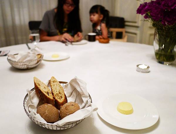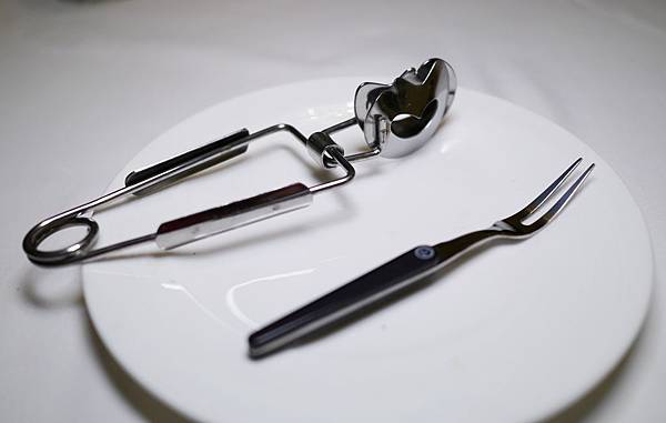 左邊是茴香炒軟後,加上海膽、蛋、波特酒一起去蒸熟;右邊是鵝肝經過酒漬後蒸熟,中間是開心果,最上層是粉紅香檳凍,鑲上一點金箔,一開始的開胃菜就讓妞媽充滿驚艷!!非常期待後續的美味佳餚