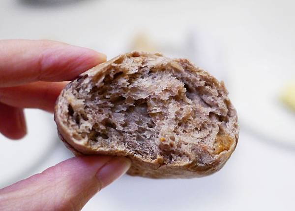 鬆軟的麵包裡面有核桃等堅果,吃起來很香~