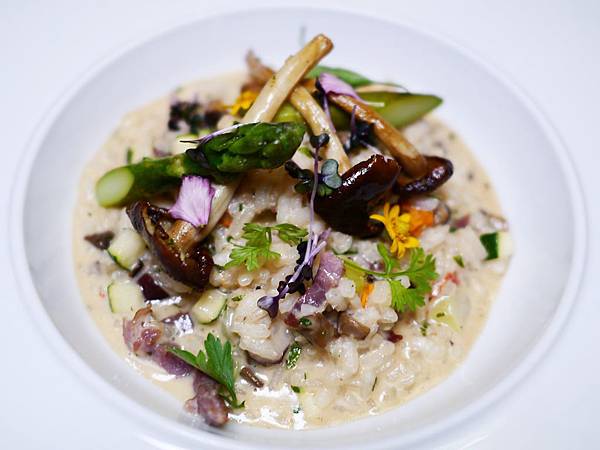 妞妞吃的橄欖擷瓜燉飯,裡面有綠蘆筍和柳松菇,乳酪的味道非常濃郁、吃起又不會太膩,非常美味