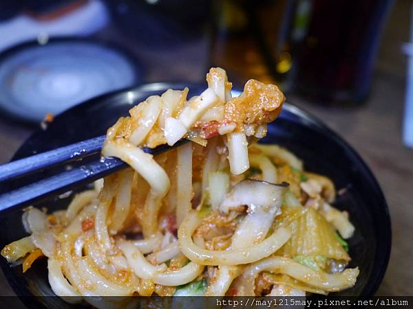 明太子泡菜炒烏龍麵,這道菜好好吃喔!! 微酸微辣加上Q彈的烏龍麵,搭配明太子的口感,整道菜就是妞媽的心頭好~