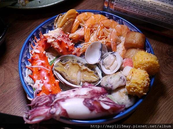 厲害的頂級帝王蟹海鮮鍋, 裡面有帝王蟹、生食級的生蠔、白蝦、鮑魚、透抽、蛤蠣和大扇貝...真的好澎派喔!!