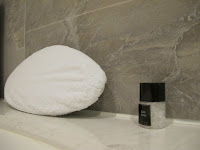 淋浴區有兩種花灑,天花板上的雨淋式花灑,水量真的像雨滴一樣,會輕輕灑落,沖起來有著自然的舒適感,值得一提的是這裡的沐浴乳、洗髮精雖然不是甚麼知名大牌,但香氣非常淡雅。