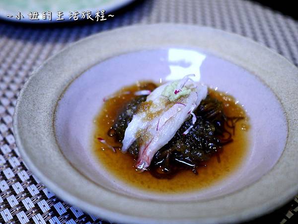 松葉蟹腳、水雲佐洋蔥醬汁,松葉蟹腳是生食,師傅不但幫我們處理好,不需要再剝殼外,味道更是鮮甜多汁;水雲屬於海藻類的一種,口感細緻。因為朋友不吃海藻類的食物,所以妞媽吃了兩份,超滿足的!!