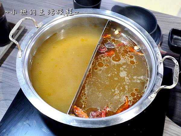 鍋底為鴛鴦鍋,分別是蒙古天香鍋與昆布湯頭,昆布鍋使用道地的日本昆布,加上蔬菜熬煮3小時,不加味精或是人工調味料;蒙古鍋天香鍋,湯頭喝起來溫潤微辣,一上桌就充滿天香鍋的香氣,吃完不會口乾舌燥