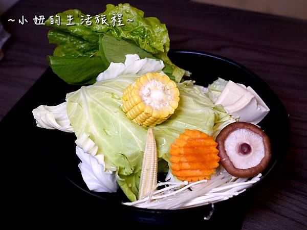 蔬菜盤,裡頭有玉米、高麗菜、青江菜、 玉米筍、板豆腐、金針菇、絲瓜等