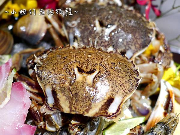 澎派的海鮮拼盤,海鮮都快滿出來了!! 裡頭有黃金蟹、白蝦、生食級胭脂蝦、干貝、 鯛魚片、多立魚、 蛤蜊、一口花枝