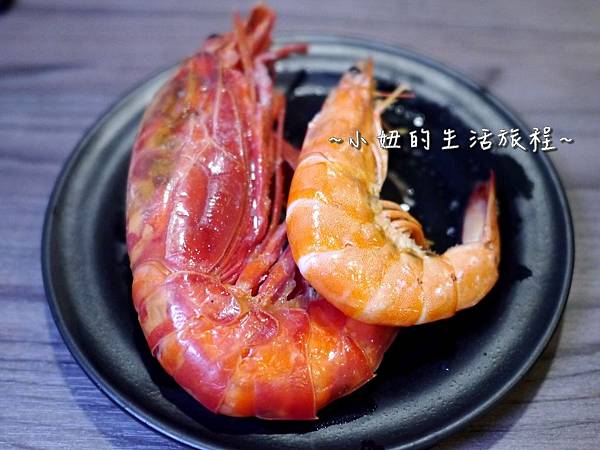 胭脂蝦和白蝦放在一起的樣子,胭脂蝦肉質吃起來緊實Q彈,充滿濃濃的蝦味,好蝦啊~