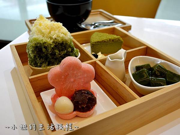 辻利午茶套餐,裡面的飲品、冰品、白玉、蛋糕和日式甜點都可以自己選,妞媽選了特濃的起司抹茶蛋糕、宇治金時、白玉紅豆最中餅、抹茶蕨餅和御抹茶